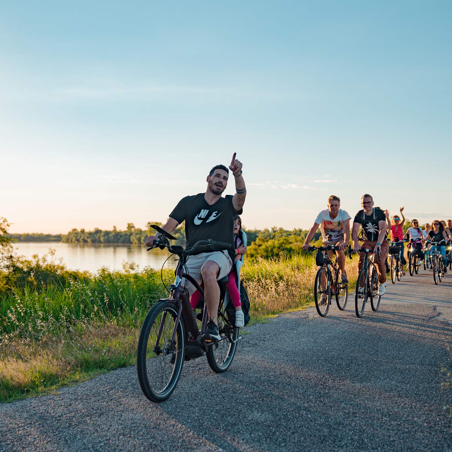 Cosa c’è di più romantico di una biciclettata serale nella bellissima cornice del Delta del Po, quando il sole fa brillare le acque, le folaghe tornano ai nidi e la brezza muove le canne palustri? E cosa c’è di meglio che pedalare verso un’osteria tipica, dove ci aspetta dell’ottimo pesce da degustare, un bicchiere di vino accompagnato da buona musica e tanto divertimento?